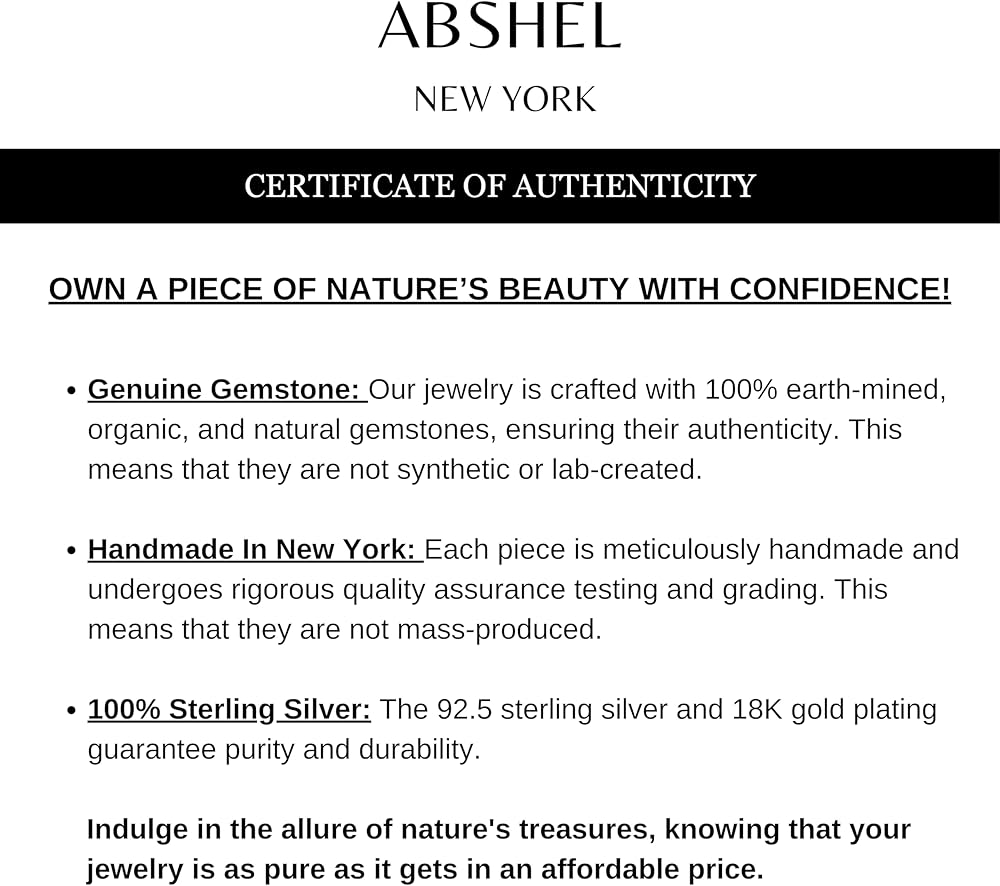 CARE INSTRUCTIONS - 1. Remove your jewelry before entering water, applying lotions or perfumes. 2. When not in use, store in a sealed plastic bag. or jewelry bag. 3. Clean your jewelry with soft, dry cloth. Proudly Handmade in New York.