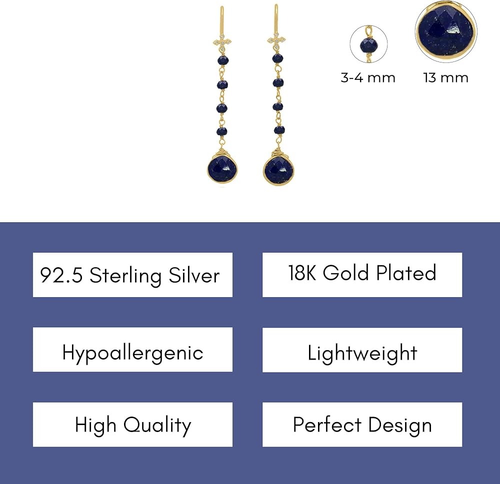 CRAFTED - The earrings are 2'' long from the top of ear wire. Natural blue sapphire gemstones are 3-4 mm and 13mm heart facet stone and necklace length is 18". Each bead is unique since they are ethically sourced from mines around the world. There might be slight variation in the size, color, and texture of each of these natural stones. Dainty birthstone drop dangle earring necklace set for women and girls wear.