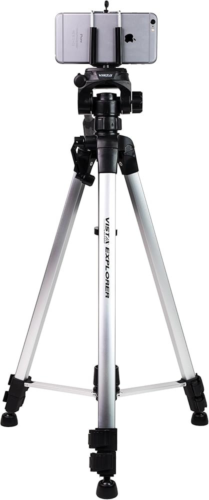 The Explorer Tripod is perfect for digital, video and still cameras up to 4 pounds. Featuring quick release leg locks and 3 way pan head, this tripod is a breeze to set up. Utilizing a geared center post, this extends from 22" to 60" giving great range. Extra leg support offers better stability. Tripod bag included.