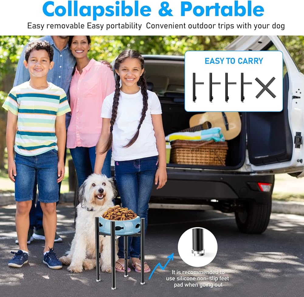 【Foldable and portable】This elevated dog bowl stand can be quickly installed and disassembled for storage. After disassembly, it takes up very little space and can be easily placed in a dog travel bag or a car compartment. It is very suitable for camping with your dog