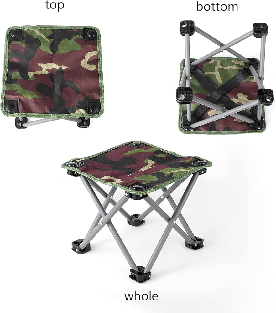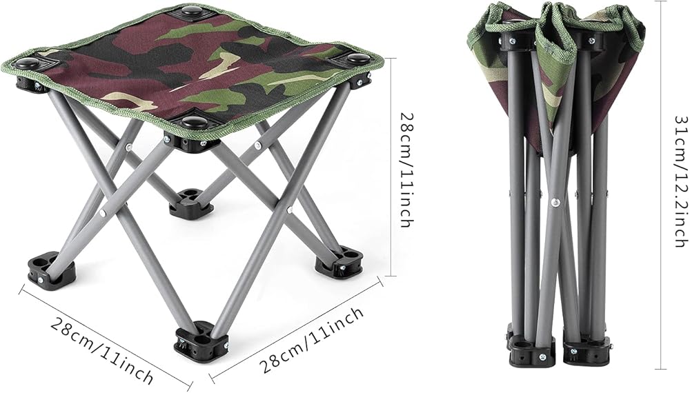Portable camping chair size: Camping folding stool expanded area:11.22"L x 11.22"W x 10.24"H.Fold Size:3.94"Wx10.24"H.