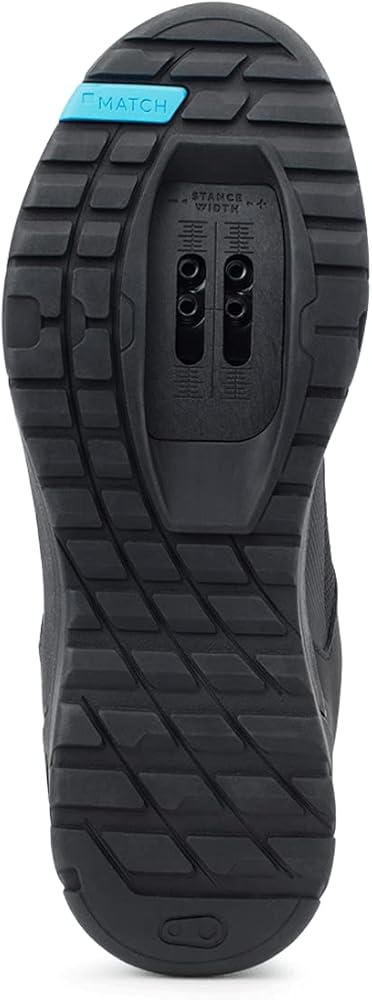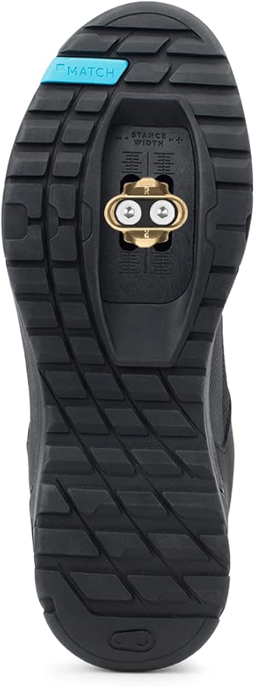 CLIP-IN SYSTEM DESIGNED FOR OPTIMAL SHOE / PEDAL INTERFACE: Match Box offers optimized compatibilty for any MTB pedal, Race Zone cleat positioning guarantees control and stability, and the stiff carbon shank provides efficient power transfer. Ramp secures easy clip-in / out and mud clearance, MC1 rubber compound provides low friction for easy exit