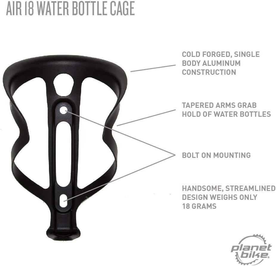 This 18 gram water bottle cage is nearly as light as air. The cold forged, single body aluminum construction grabs hold of your water bottle until you need to wet your whistle. Its handsome and streamlined design will compliment any bike.