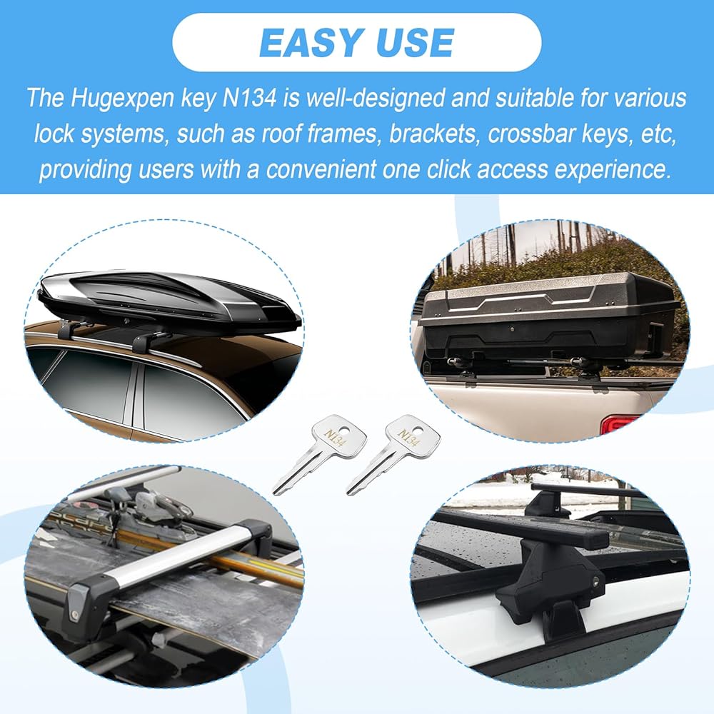 【easy use】The Hugexpen key N134 is well-designed and suitable for various lock systems, such as roof frames, brackets, crossbar keys, etc., providing users with a convenient one click access experience.