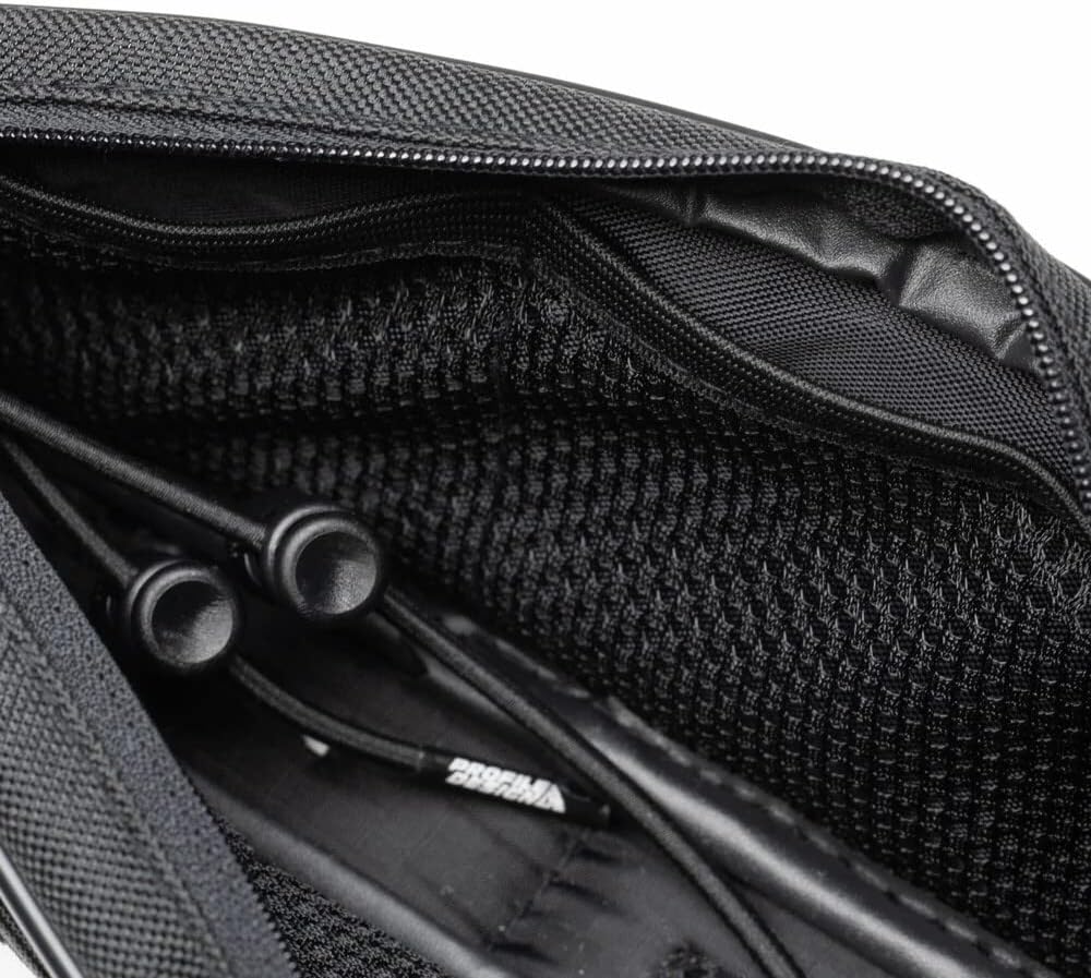 This soft sided bag has a double zipper for easy access to the large compartment. It also features mesh pockets to organize your food/devices and other essentials. The robust construction helps it hold shape and it can easily be attached to your frame with straps, zip ties or direct mount bolts.