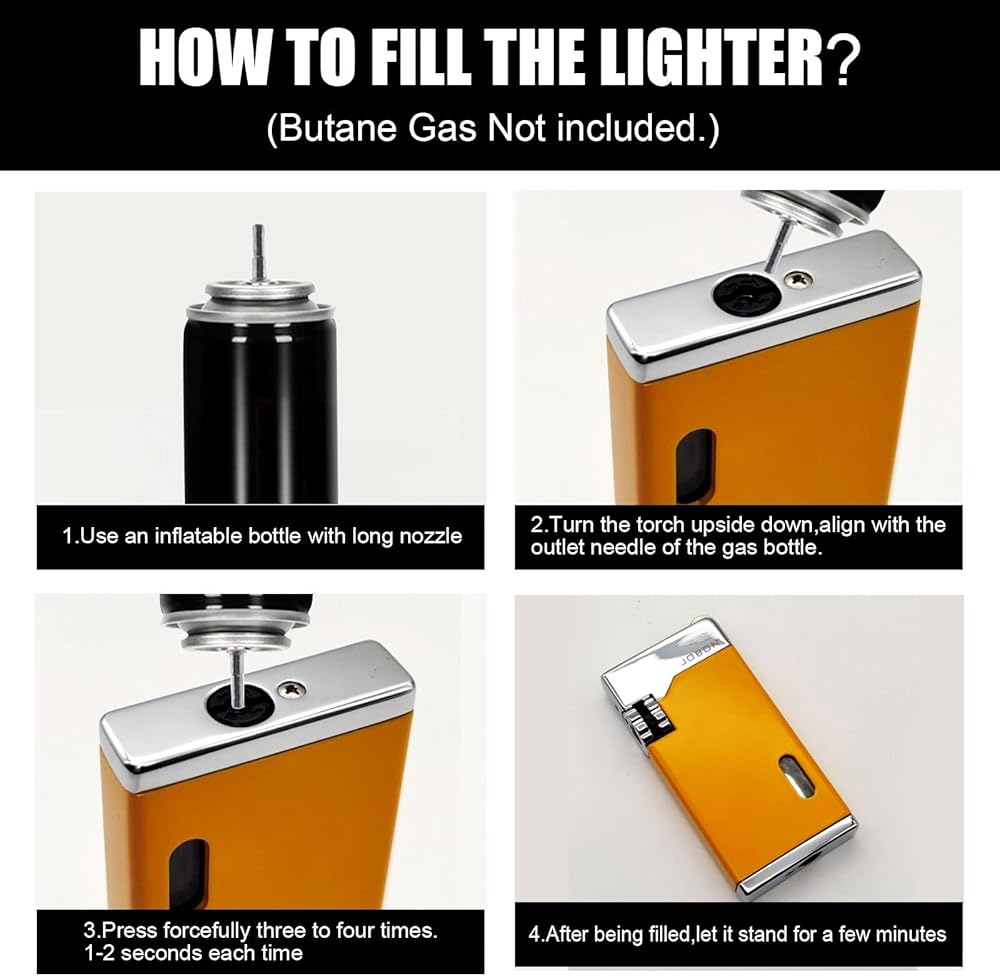 🔥[Attention One]: Due to internaitonal shipping safety refulations, lighters filled with butane gas cannot be shipped. So this jet lighter does not contain gas, please refill it before using. Premium Butane is highly recommeded, otherwise lower quality butane will clog lighters.