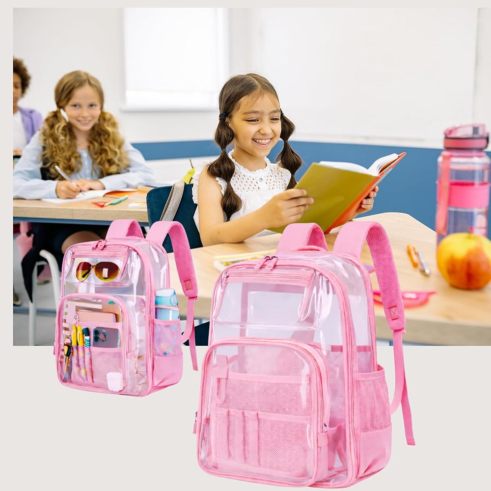 Heavy Duty CLEAR BACKPACK WATERPROOF PERFECT SIZE LARGE COLOR PURPLE, TSA-friendly Clear Backpack for Traveling Convenient See-through Function More Details Material: 0.5 mm Thicker PVC+ 900 D polyester Dimension: 16.5L X 6.5 W X 12.5H inch Maximum load-bearing: 65 lbs Well-made Details Dual zipper for the main compartment Breathable Soft-padded shoulder straps Double-stitched to enhance tear resistance- Convenient See-through Design. The clear design of the see-through backpack helps you quickly get through the security; Perfect see-through backpack for work, stadium, library, museum, travel, parks, sports, picnic, fishing, hiking, concerts, carnivals, etc. Fully meet your daily needs Great for 15" Great for 15" Laptop. The large capacity backpack is perfect for College work. place Laptop : fits laptop size up to 15 inches. Durable Material.Made of 0.5 mm durable clear PVC and 1680 D Waterproof Oxford Well-made Details Double smooth zipper; Reinforced Stitching for long-lasting use, and We have in various Lovebly colors.
