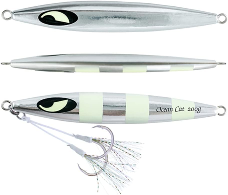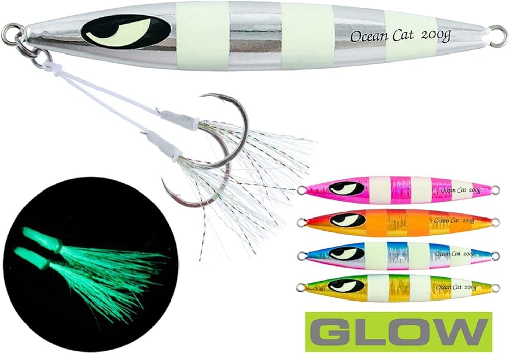 HIGH QUALITY jig with stinger: each slow pitched jig attached with a pair of MUSTARD hooks(Butterfly series: B07C5KRTHX) with glow fishing attracting tassles.