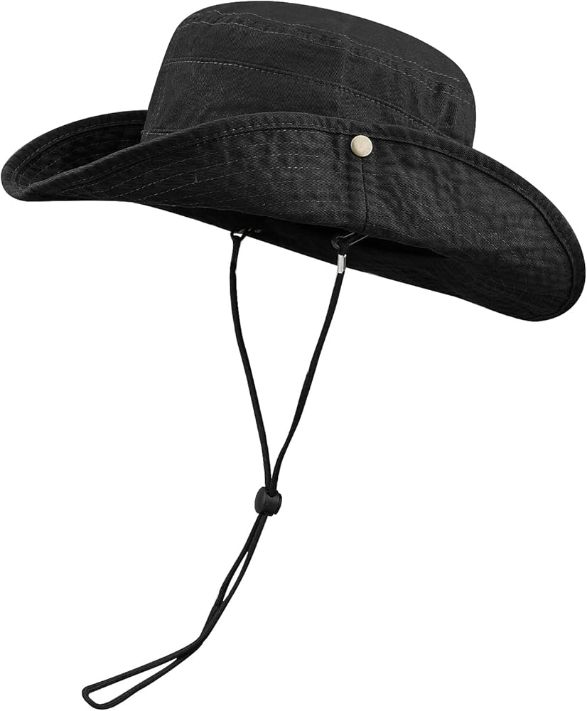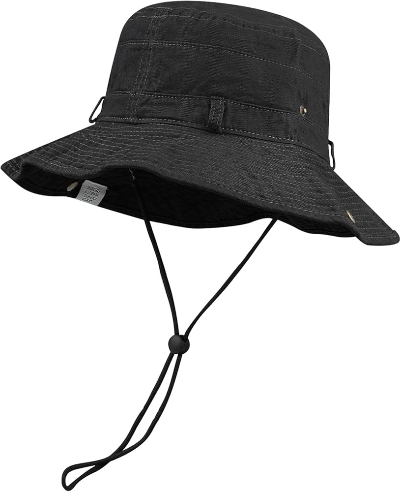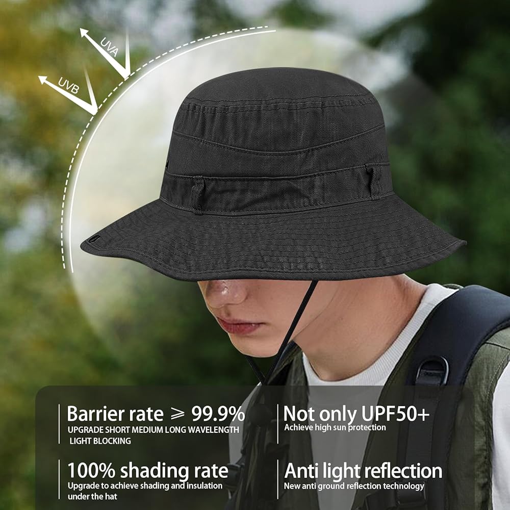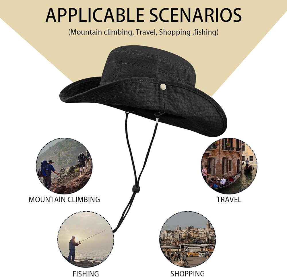 Outdoor Necessities-Wide Brim Sun Hat: Wide brim 3.15inch (8cm), blocking 50% sun UV rays and providing excellent full coverage for face&neck while outdoors; There are copper female buckles on both sides of the Beach hats, and the brim can be buckled up. Add a detachable chin strap, there are 3 ways to wear it, You can wear it as a regular bucket beach hat, a chin strap fishing bonnie hat or button it up as a cowboy hat. which is fashionable and versatile.