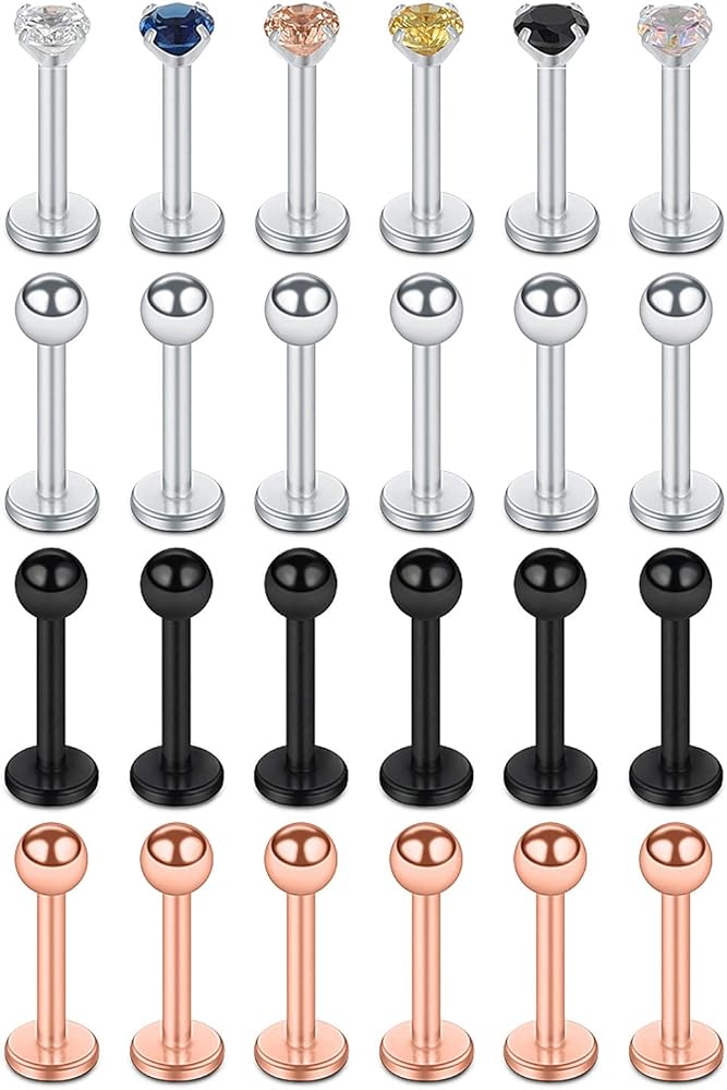 - Package Includes: 24PCS Stainless Steel Lip Rings(Silver,Black,Rainbow,Prong-Setting CZ,Each Style 6PCS), come with one velvet bag.