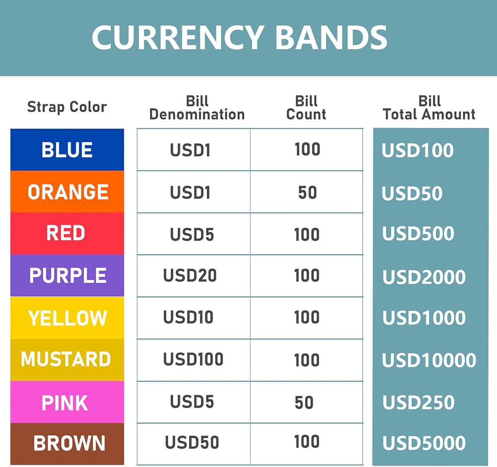 [Color Classification]: Cash bands comply with the American ABA standard, which can help you quickly identify the value of each bundle of banknotes;