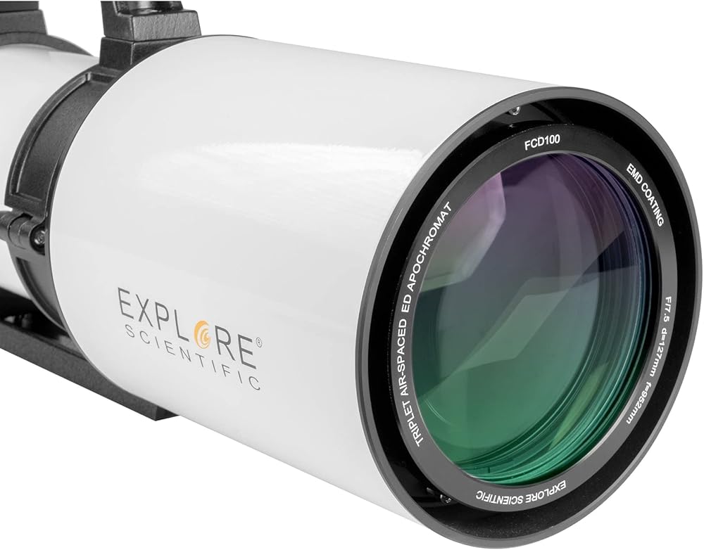 - Explore Scientific ED127 Classic White f/7.5 Air Spaced Triplet with Hoya FCD100 optics and Integrated Dew Shield