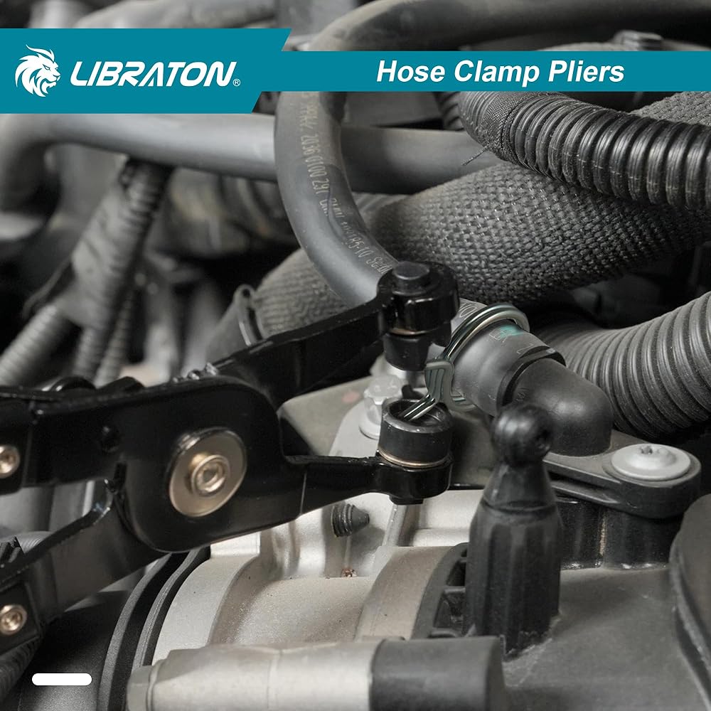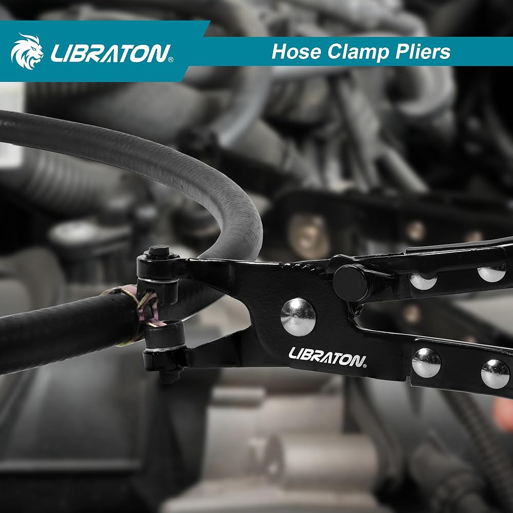 LIBRATON Hose Clamp Pliers, Professional Hose Clamp Tool with Swivel Flat Band for Removal and Installation on Flat-Band or Ring-Type Hose Clamps, for Car Fuel Oil Water Pipe Repair Tools