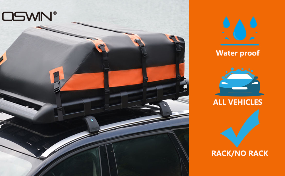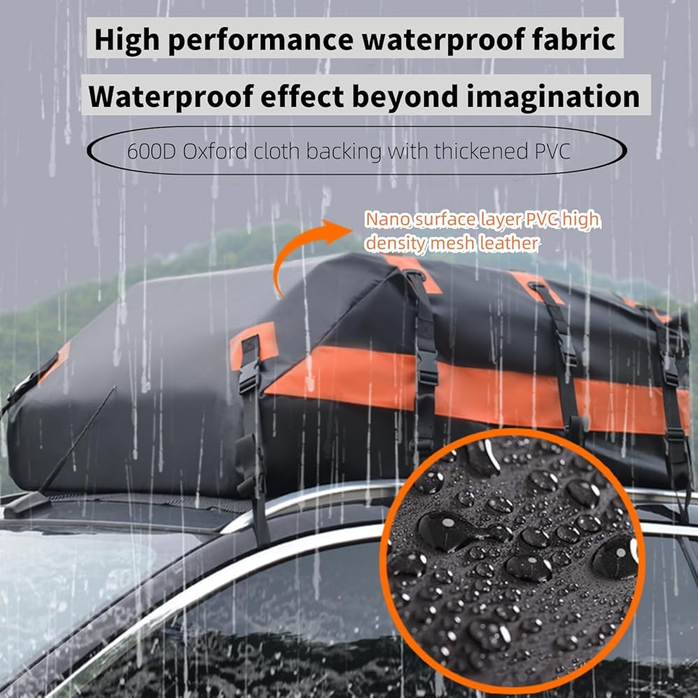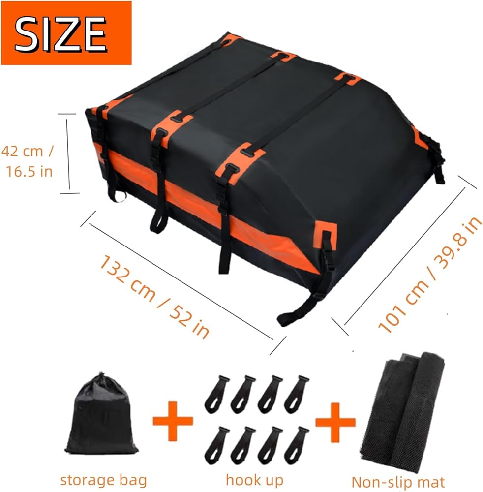 OSWIN roof Luggage Bag Waterproof 20 Cubic feet, Suitable for All Cars with/Without Luggage Racks, Anti Slip pad, 8 Reinforcement Straps, 6 Door Hooks.