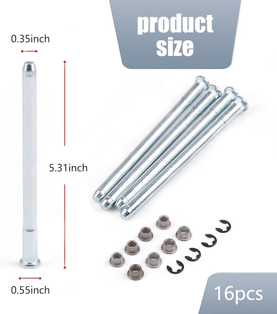 16 PCS Car Door Hinge Pin Bushing Kit, 5.31" x 0.55" Driver's Side Door Hinge Repair Kit, with E-Ring Clamp Mounting Accessories, Compatible with 1988-2002 Chevrolet GMC (Silver)
