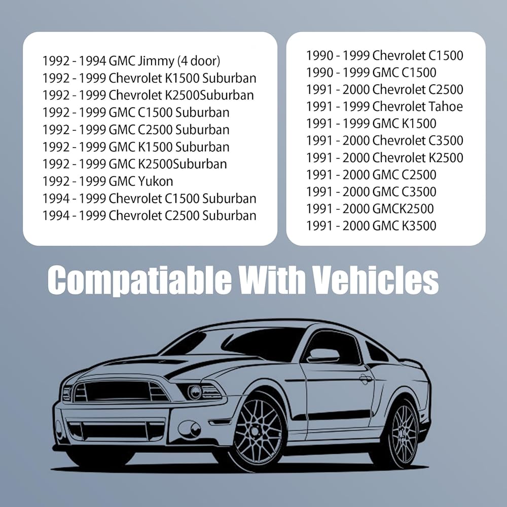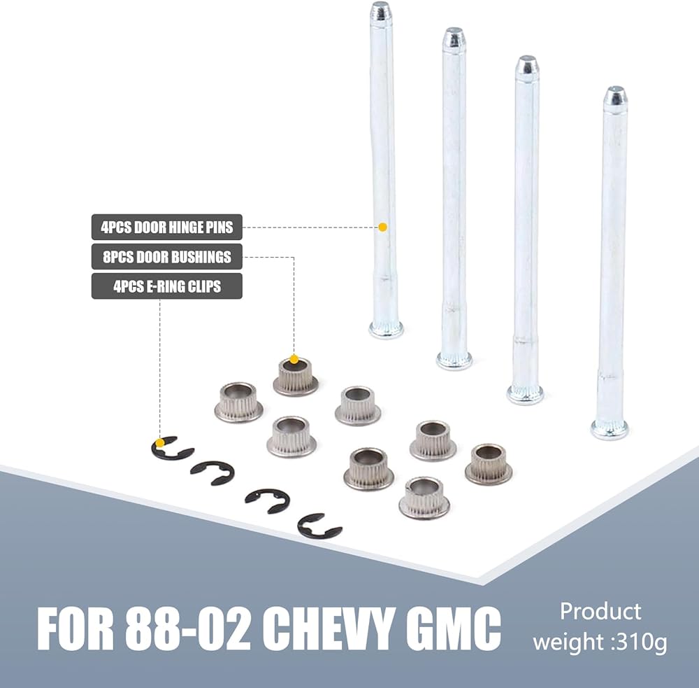 Compatible Models: This door hinge pin bushing kit is compatible with 1988-2002 Chevrolet GMC full-size truck SUVs. Fits 1990-1999 Chevrolet C1500/GMC C1500, 1991-2000 Chevrolet C2500, 1991-1999 Chevrolet Tahoe/GMC K1500, 1991-2000 Chevrolet C3500/K2500, 1991-2000 GMC C2500/C3500/K2500/K3500. 1992-1994 GMC Jimmy (4 door), 1992-1999 Chevrolet K1500/K2500 Suburban, 1992-1999 GMC C1500/C2500/K1500 /K2500 Suburban, 1992-1999 GMC Yukon, 1994-1999 Chevrolet C1500/C2500 Suburban.