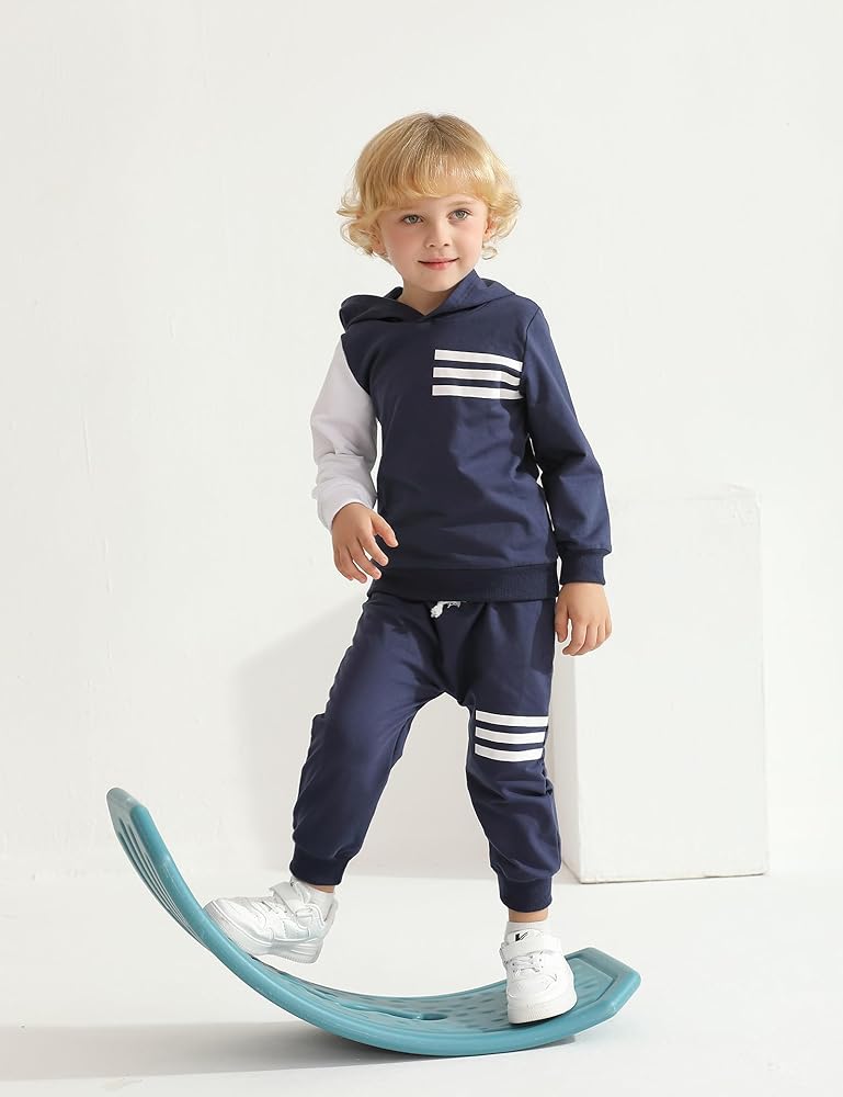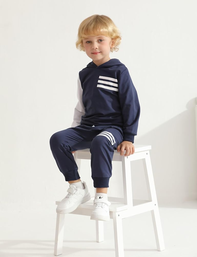 Design: Boys fall outfits featuring a striped paneled long-sleeve top paired with solid color sweatsuit pants, good elasticity, long pants with elastic waistbands make your boys more comfortable, your little boy will love it
