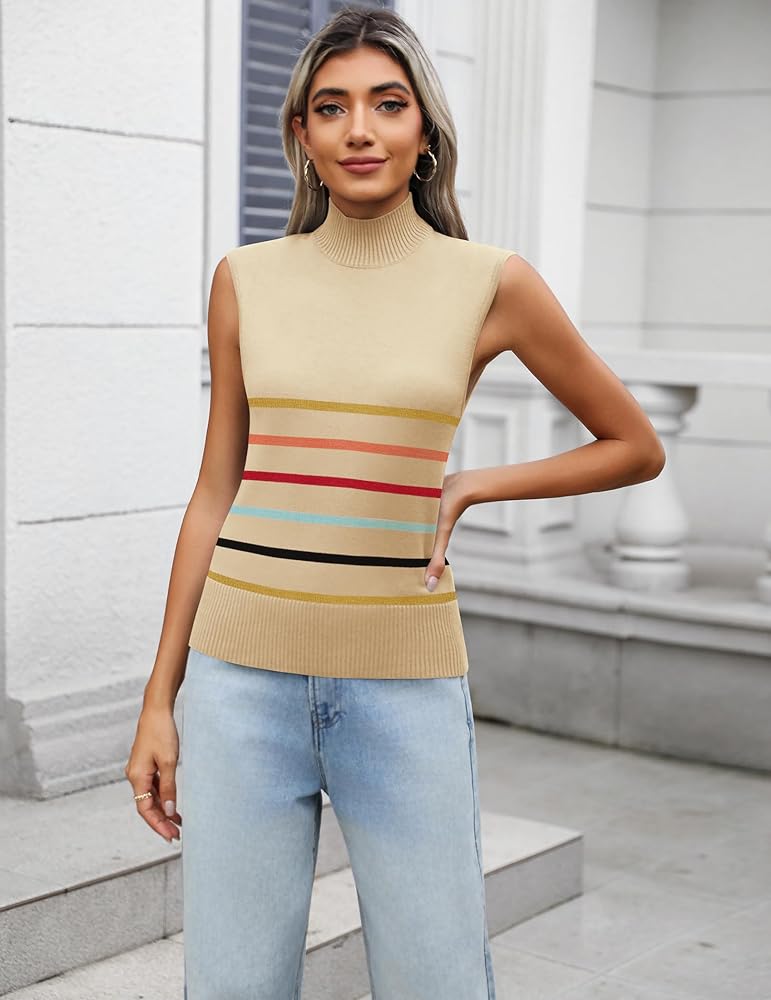 Soft and Stretch Material: The 2024 sleeveless sweater top are made of 50.7% viscose 28.6% polyester 20.7% nylon knit fabric. The women's turtle necks sweater tank tops is soft, breathable and comfortable to wear, just the right amount of stretch to fit a variety of body types.