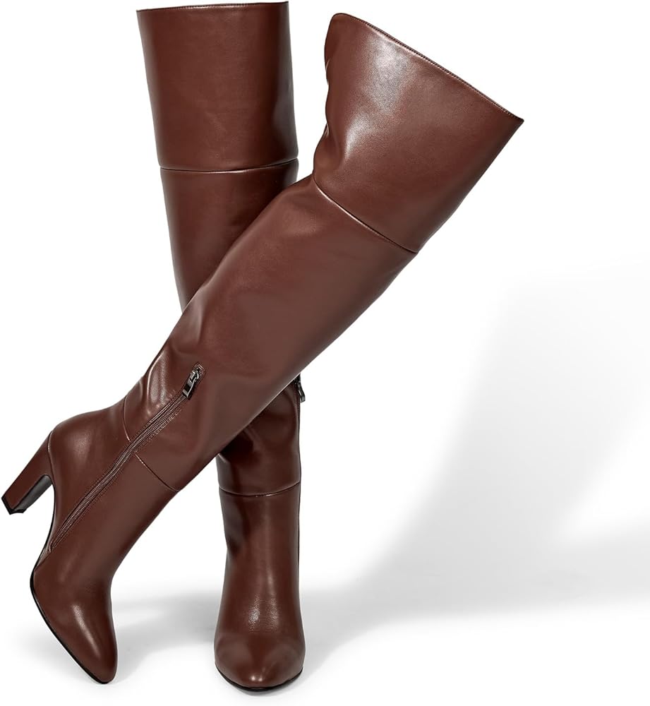 DESIGN: Ignite your style with these chunky heel tall boots ! With their sleek design and comfortable fit, these brown thigh high boots are not just fire on the runway but also in your daily life.