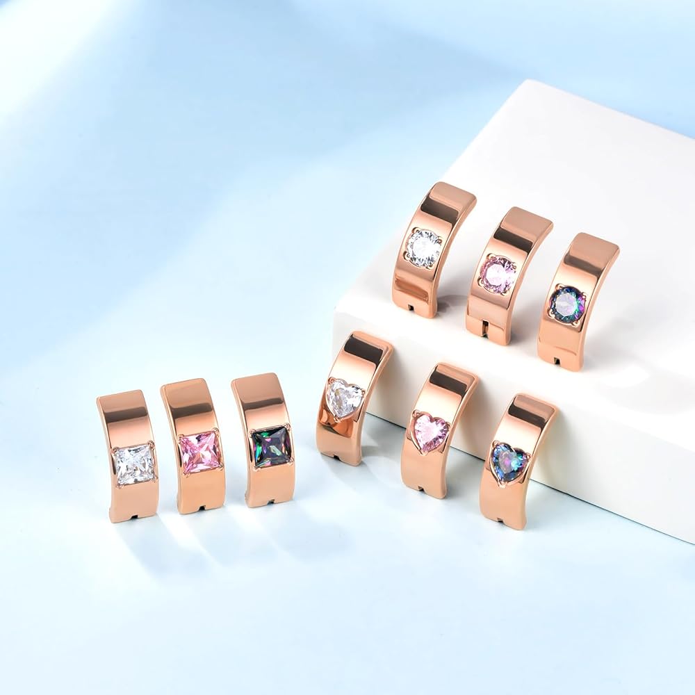 - 𝐒𝐭𝐲𝐥𝐢𝐬𝐡 𝐃𝐞𝐬𝐢𝐠𝐧: These wide clicker belly button rings feature heart, round,and square CZ gemstones for a trendy and eye-catching look.