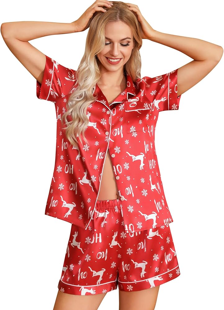 Features: This satin pajama set features a classic casual button-down style, designed with contrasting exquisite overlock stitching. It includes a classic button-up front top with a chest pocket and elastic drawstring short pants with side pockets