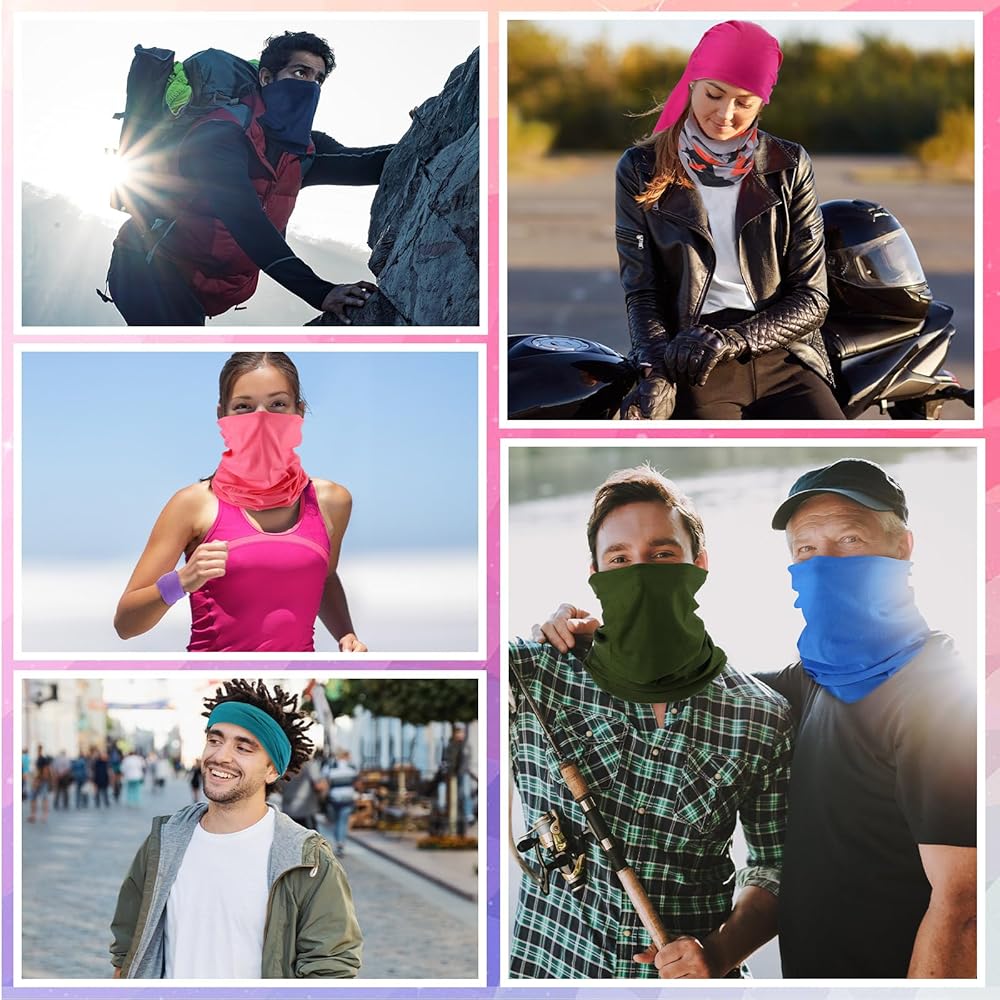 Multiple Applications: these face coverings for men women have a variety of different wearing methods, can be worn as headband, scarf, headscarf, headdress, balaclava and hat, suitable for different kinds of sports and outdoor activities, such as running, walking, riding motorcycles, fishing, hunting, skiing and so on