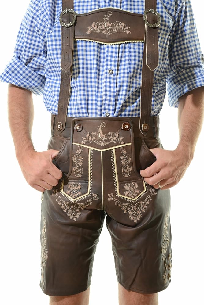 Men's Oktoberfest Lederhosen BERLIN Dark Brown - Oktoberfest Lamb Leather Trousers in Kuwait Men's Oktoberfest Lederhosen BERLIN Dark Brown - Oktoberfest Lamb Leather Trousers in Kuwait