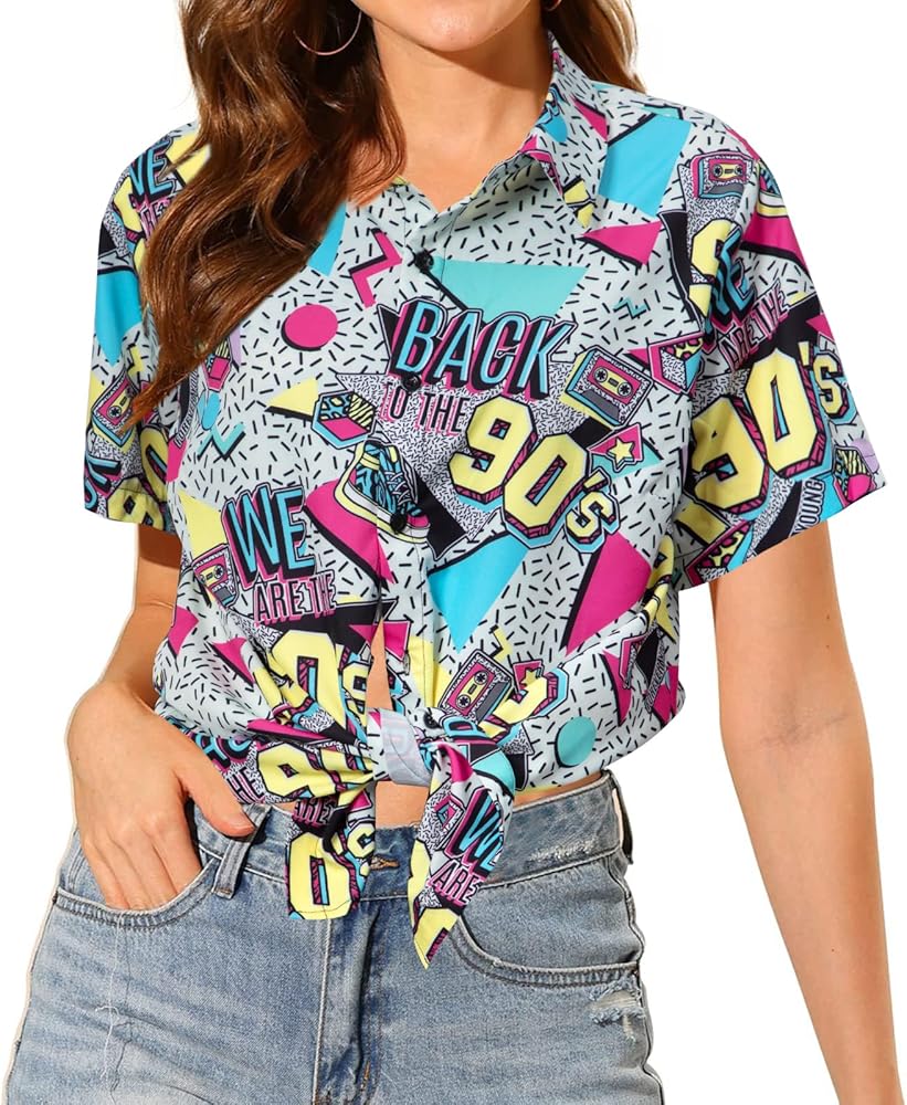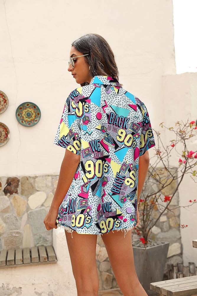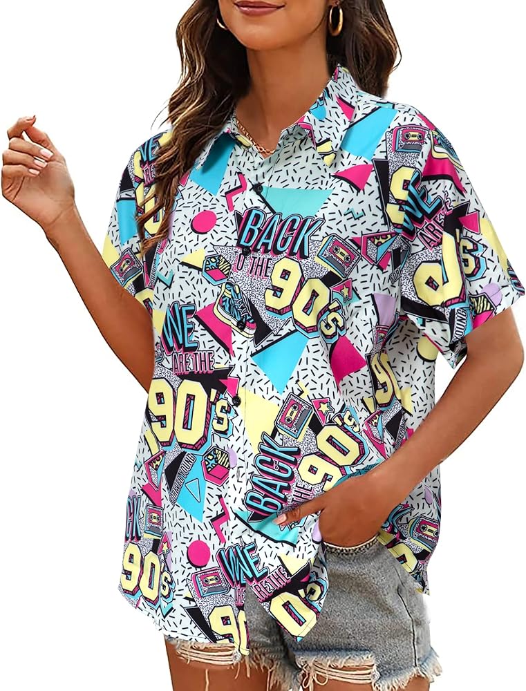 Features: 80s 90s shirts, 90s outfits for women, vintage 80s 90s outfits, 80s 90 s themed outfit for women, 80s 90s party outfits for adults, back to the 90s graphic tee, retro 90s party shirt, disco outfit shirt, hawaii short sleeve button up top. The vivid retro 80s 90s graphic is unique and exquisite, brightening up yourself in this shirt to take the 80s 90s theme photoshoot