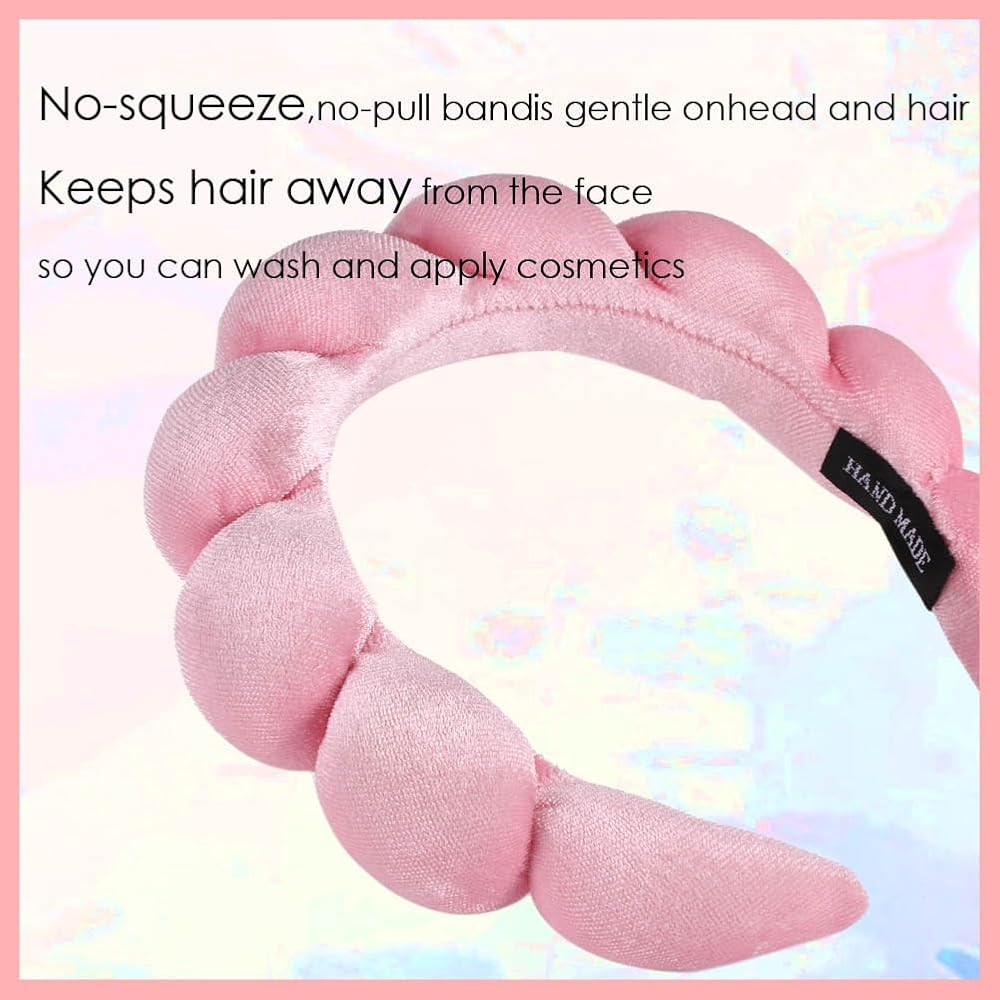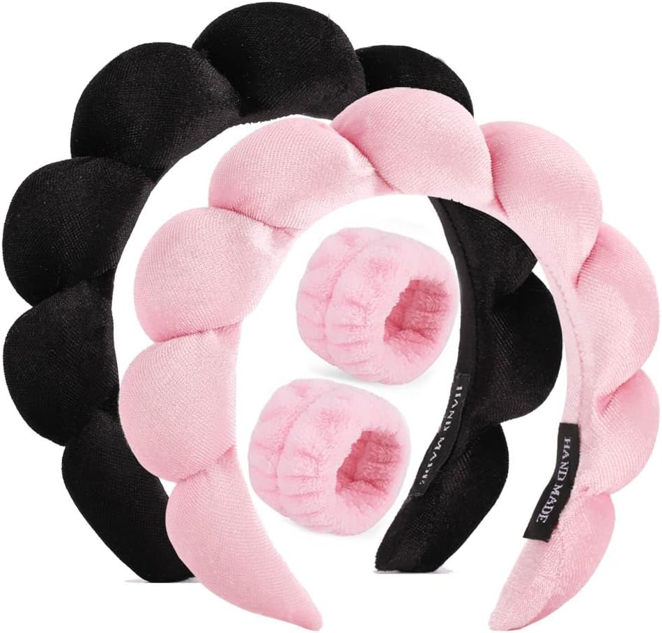 Spa Headband for Washing Face Wristband Set Sponge Makeup Skincare Headband Terry Cloth Soft Get Ready Hairband for Women Puffy Headwear