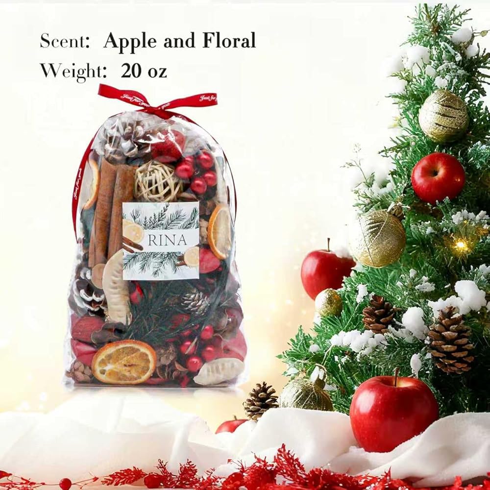 FALL POTPOURRI BAGS:Total in 20 oz orange potpourri bag,Mixture of 100% hand-made natural dried flowers like cinnamon,pine cones,pumpkin,maple leaf,petals and rattan balls,which is healthy and pets friendly(Please shake it before use and don't put it in the sun.)