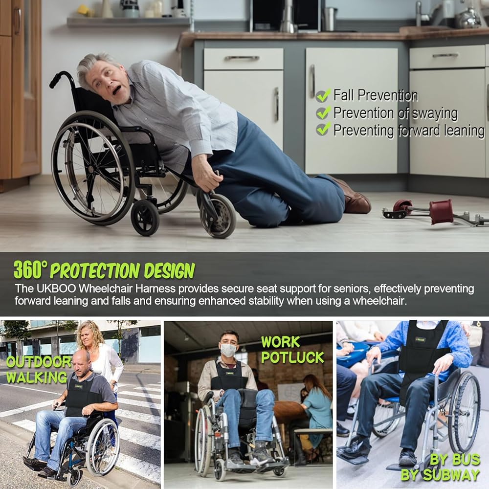 Wheelchair Seatbelt - Safety Belt with Large Chest Pocket, Anti-Slip & Adjustable Design - Wheelchair seat Belt Ideal for Elderly and Disabled - Safety Belt for Elderly - Wheelchair Accessories