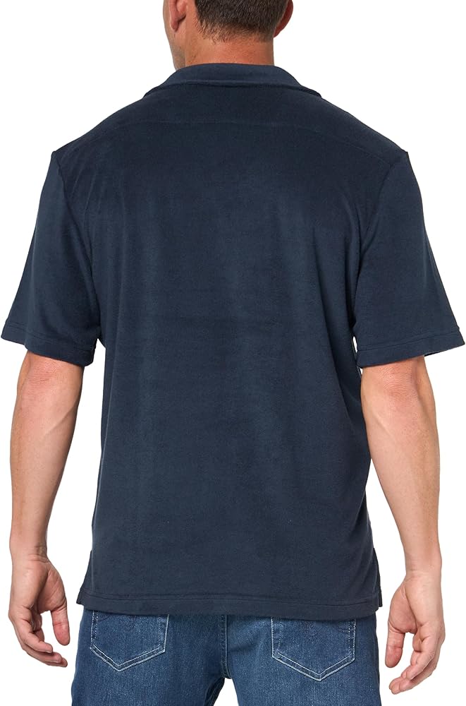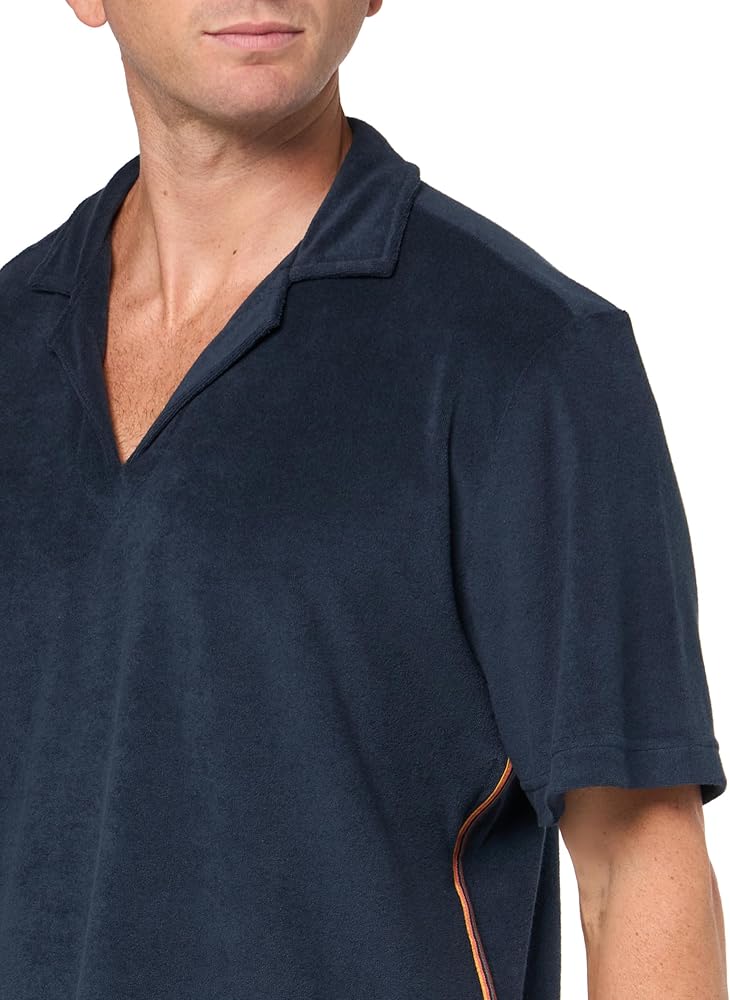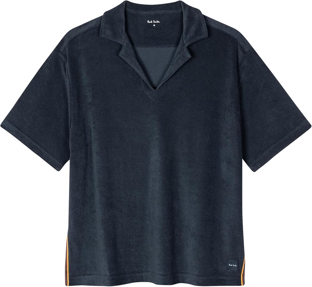 Cut from soft but textured cotton-blend towelling cloth, this bottle green lounge T-shirt features a plain design with an open collar. Finished with 'Artist Stripe' tape detail and a Paul Smith logo label at the hem.