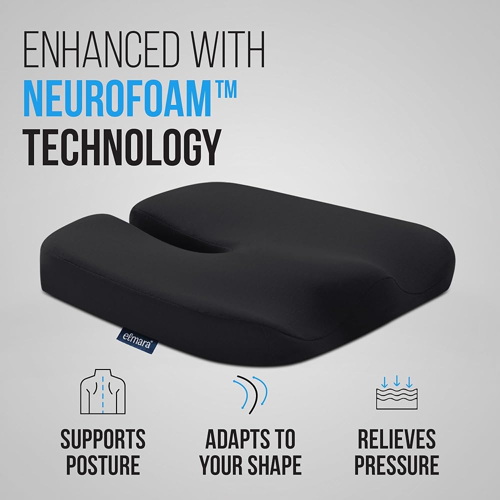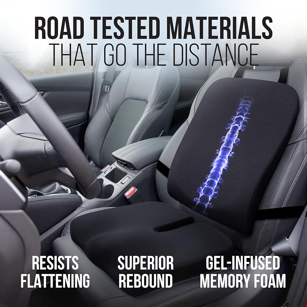 BOTH SUPPORT & COMFORT: Most car seats are too hard and too low and cause back pain with extended sitting. Our memory foam cushions are firm enough to support proper posture and long term back health, while soft enough to be ultra comfortable.