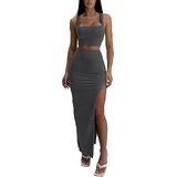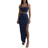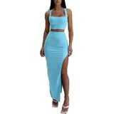 【DESIGN】Our 2 piece set include a sleeveless square neck top and a maxi skirt with a single side slit, slim fit, Highlighting a tall figure and feminine charm.