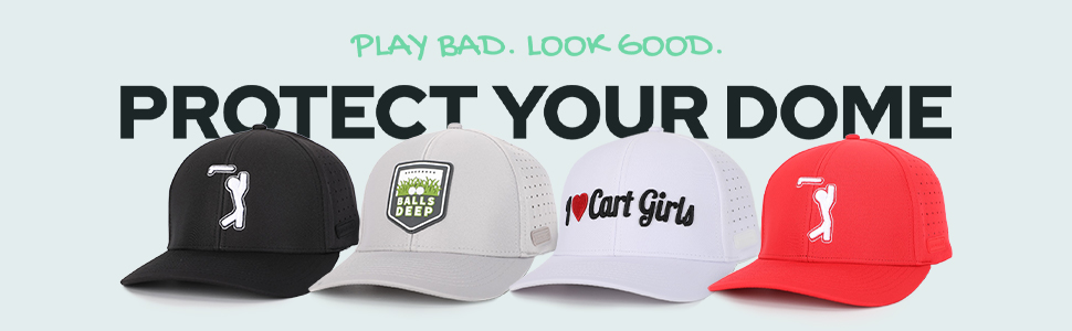 • THE ULTIMATE NOVELTY GOLF HAT! Enjoy unbeatable comfort, luxury & performance with our premium novelty golf hats, featuring wider, sun-blocking rims, a custom interior lining for sweat & stain resistance, & edgy, fully embroidered novelty designs to keep you cool, all game long!