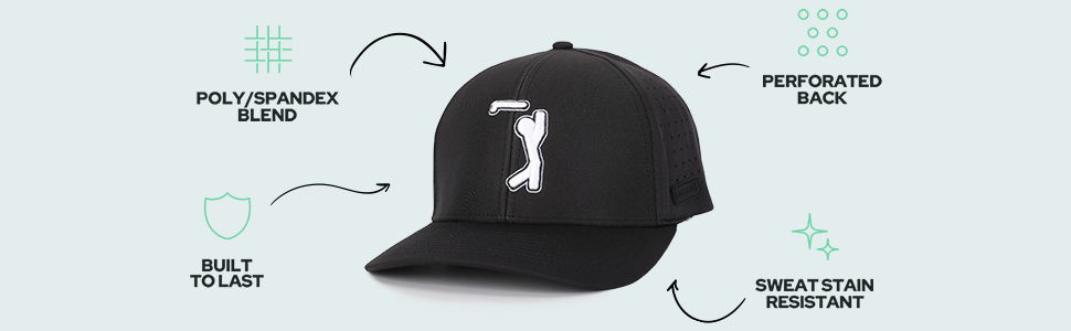 • UNMATCHED DURABILITY & FLEXIBILITY! Made with our premium, proprietary cutting-edge performance materials, our golf snapback caps are durable & can easily withstand the toughest conditions on the green, from harsh rain to the brightest sunshine & everything in between – our caps are made to last!
