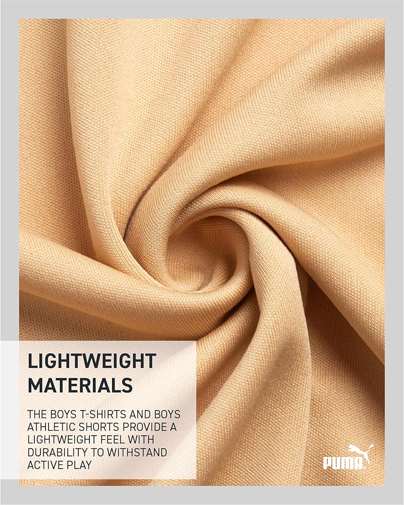 DRY FIT PERFORMANCE: Elevate his activewear collection with the PUMA Boys' Dry Fit T-Shirt and Performance Gym Shorts Set; Designed for active boys, this set features dry fit technology that wicks away moisture, keeping him cool and dry during workouts and playtime; Enjoy superior comfort and performance with this athletic ensemble