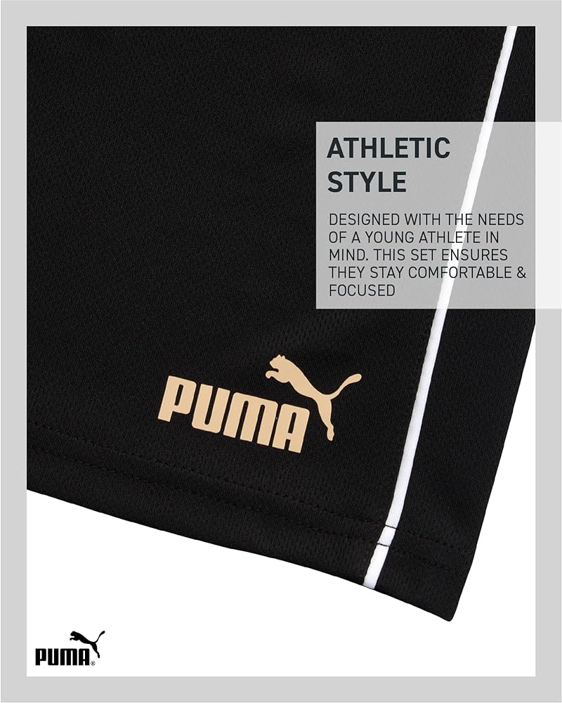 OFFICIALLY LICENSED PUMA: Boys' Performance T-Shirt and Shorts Set; Inspired by the values that make an excellent athlete: be brave, be confident, be determined, be joyful, be Puma