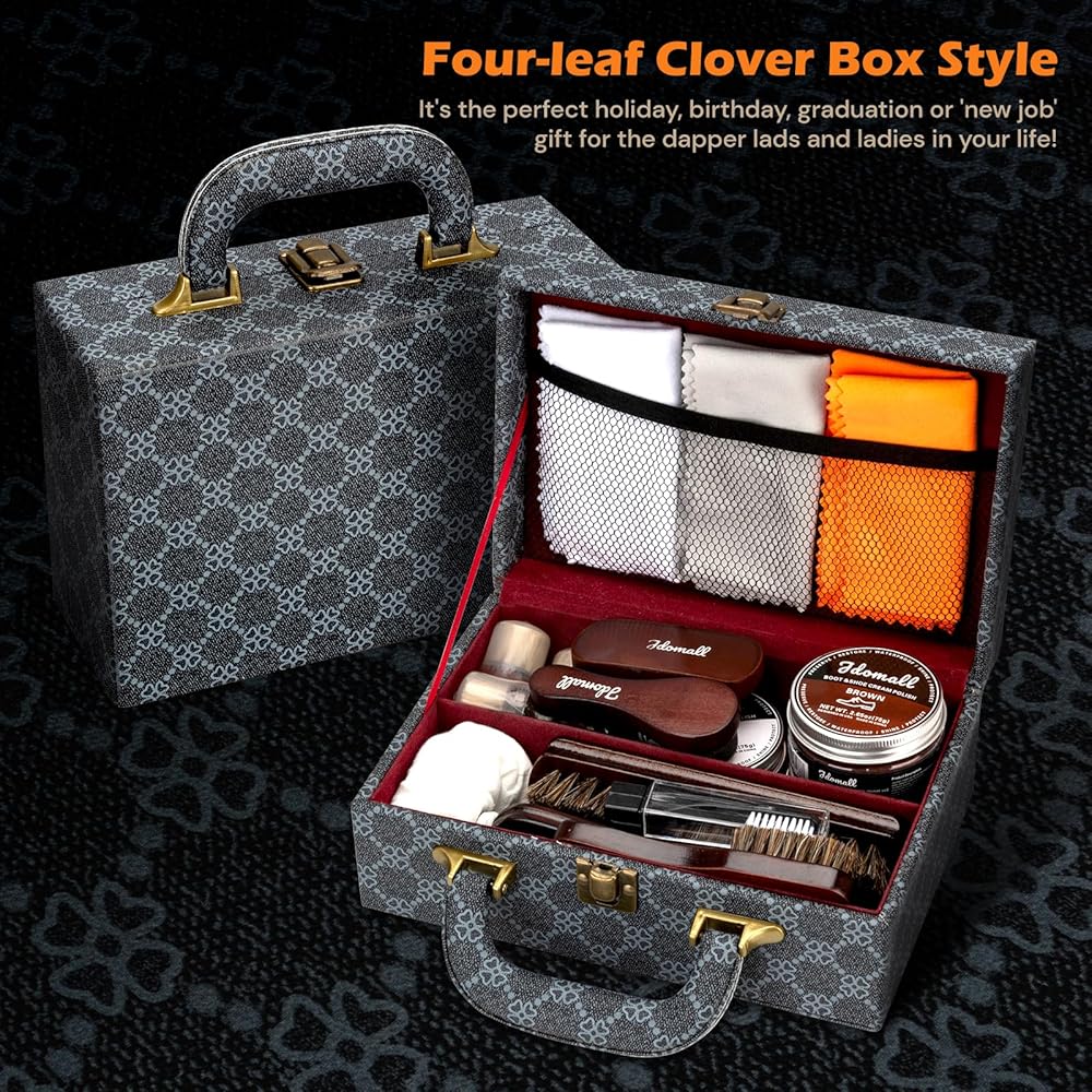 AMAZING GIFT IDEA: Celebrate special occasions like anniversaries, birthdays,or Father's Day with a unique and dazzling gift-nothing captures attention quite like shiny shoes!This shoe shine kit is the perfect present for the dapper gentlemen and elegant ladies in your life,whether for holidays,birthdays,graduations,job promotions, or just as a treat for yourself.Versatile and compact,it meets all your shoe shine needs in any setting-at home,in the office,or on the trip.