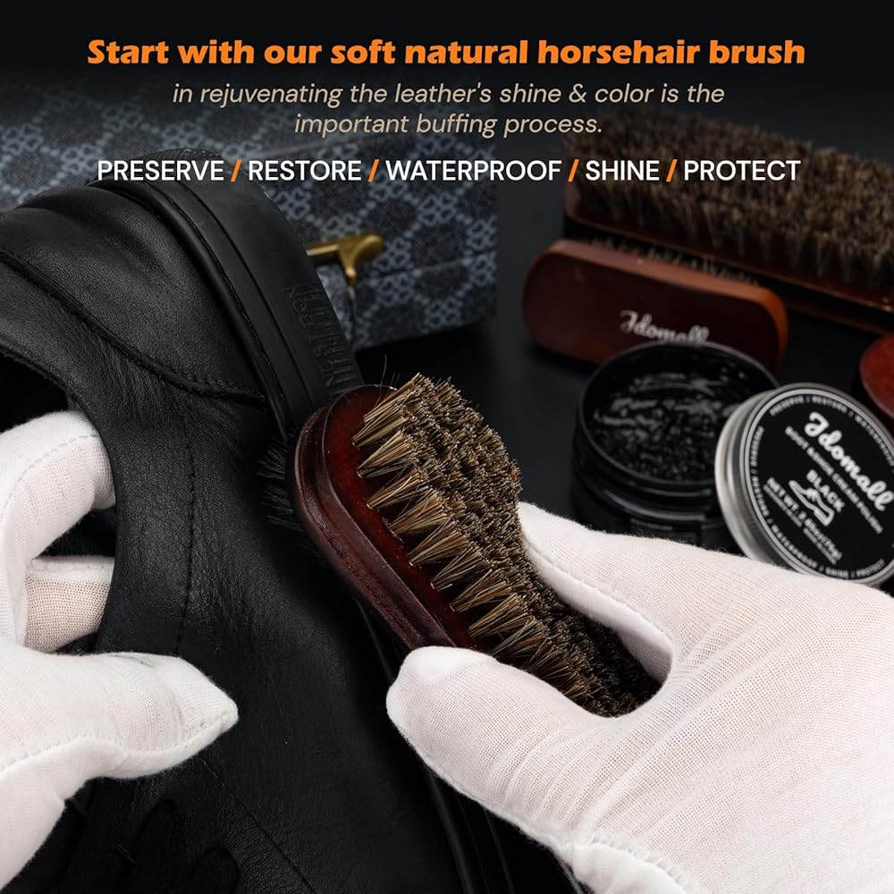 PRESERVES & RESTORES LEATHER: choose this leather shoe care kit,You never worry about dust and dull colors on your boot.The unique designs cater to both dust removal and polishing,while the natural horse bristles ensure a gentle yet thorough cleaning of your boots.The soft and delicate nature of horsehair prevents damage to leather surfaces.From now on,enjoy the leather care fun brought by a high-quality horsehair shoe brush.