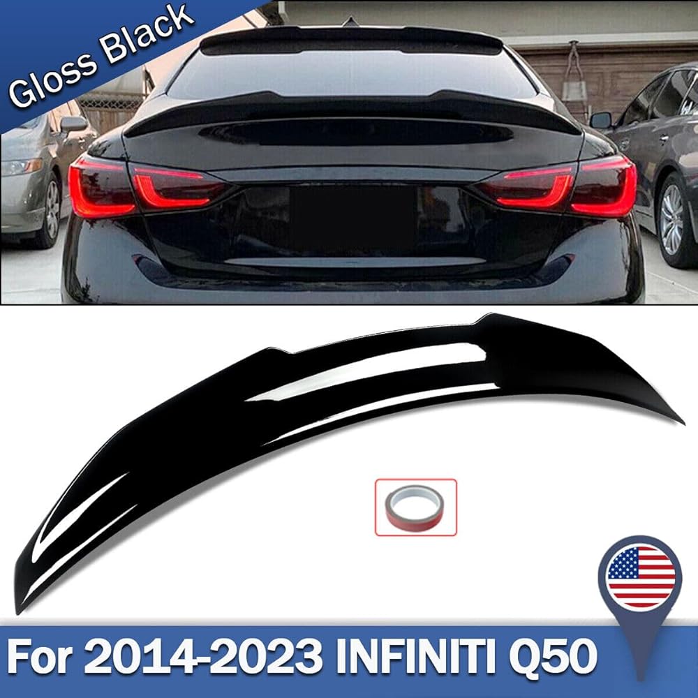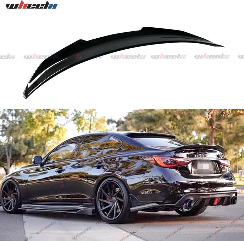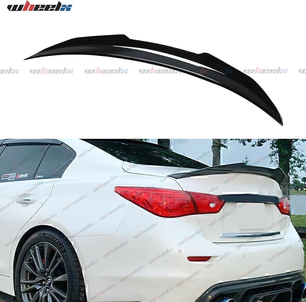 Compatibility - The WheelX Rear Spoiler is compatible with all 2014-2024 INFINITI Q50 four-door sedan models. Glossy Black.
