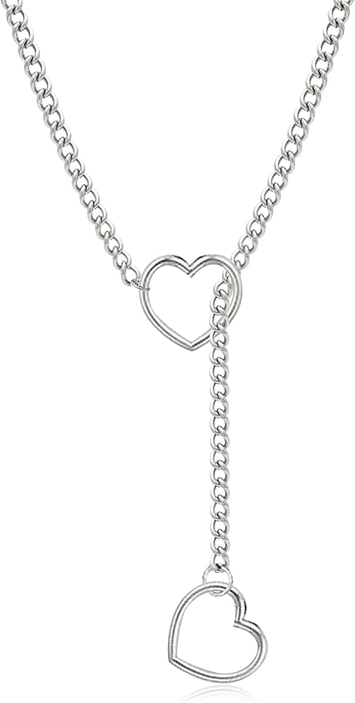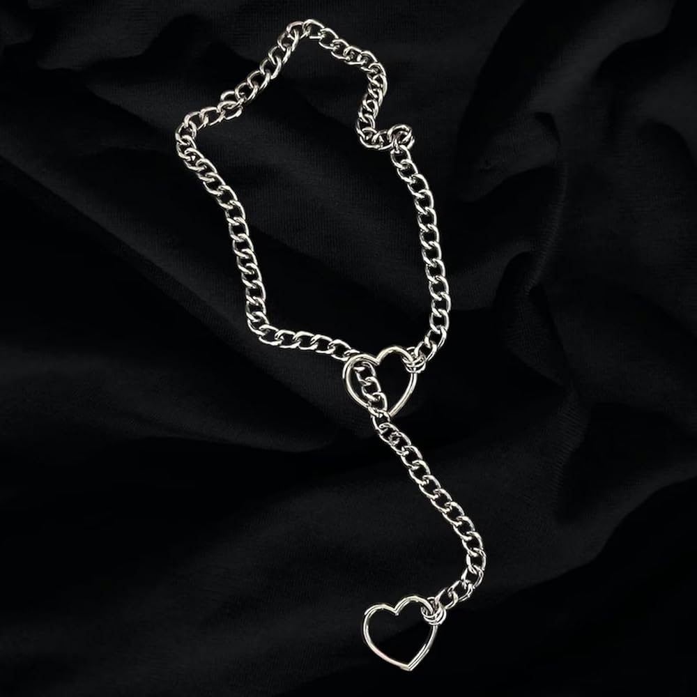 Slip Chain Necklace Heart O-Ring Slip Chain Choker Punk Rock Cuban Necklace Adjustable Lariat Y-Necklace for Teen Girls Gifts Trendy Stuff