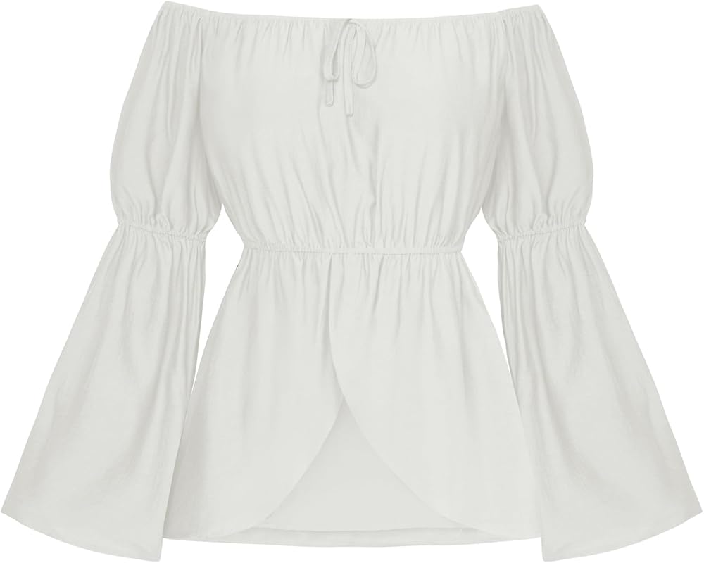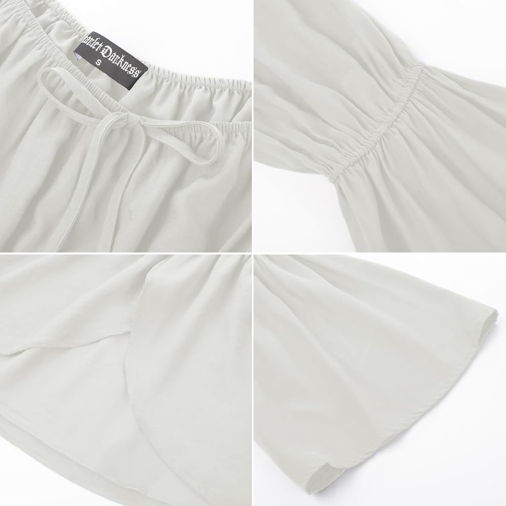 Versatile Off-Shoulder Design : This Renaissance shirt features a beautiful off-shoulder neckline, two ways wearing that can have the sleeves rest on the side of the shoulders or be pulled up top the shoulders.