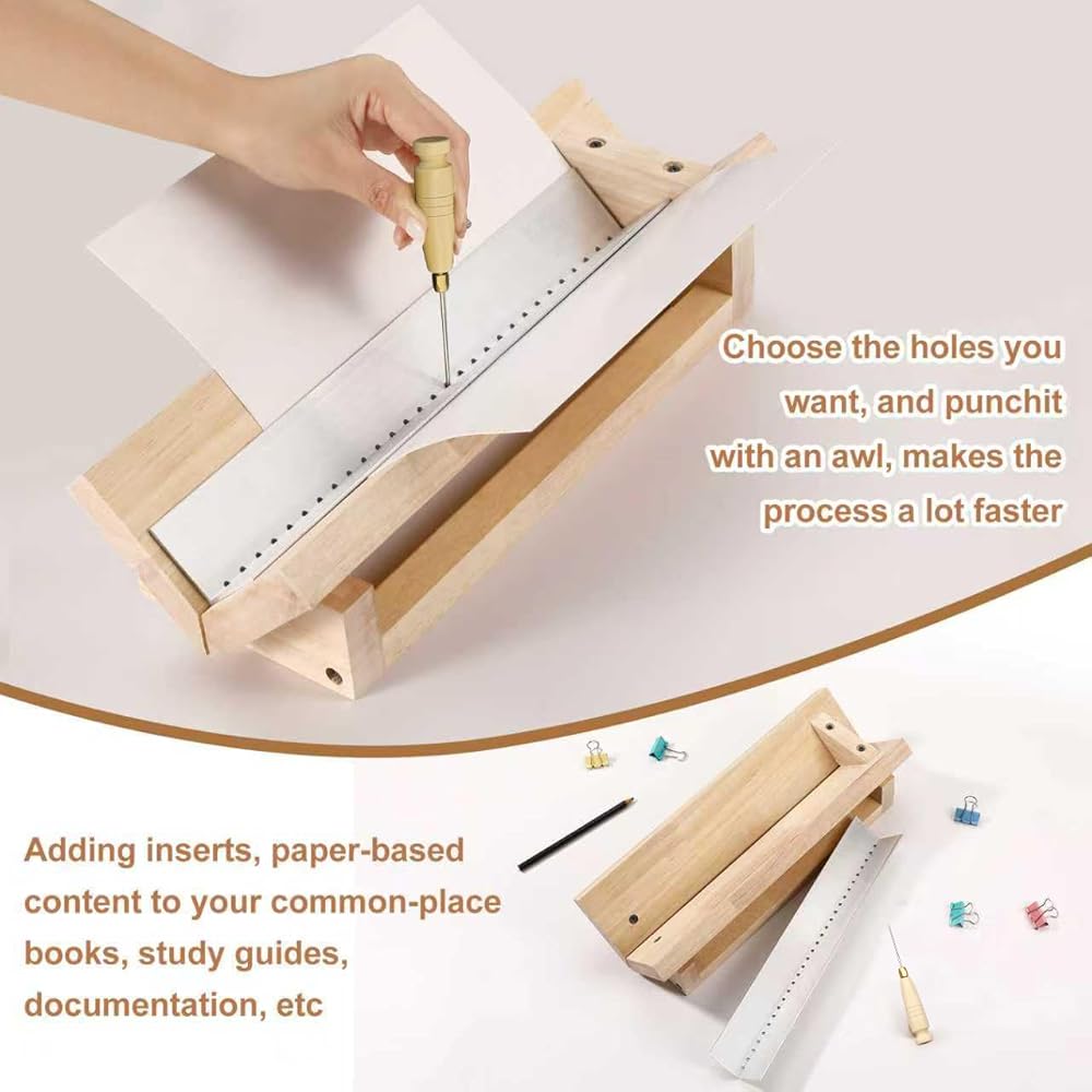 Bookbinding Punching Cradle with Aluminum Piercing Guide, with an Awl (Wooden-Handled), Signature Punching Tool Set for Bookbinding Kit, for Book DIY Crafts, Polished Smooth Surface, Easy to Use Guide