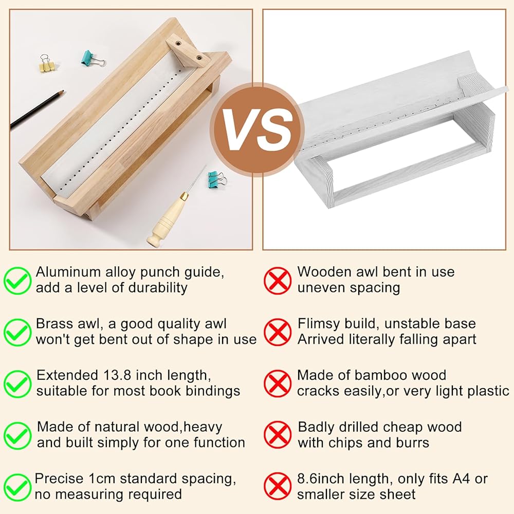 Practical & Long-lasting Tool: Unlike others, our punch guide is made of aluminum alloy, which is more durable and permanent when it comes to punching. Signature punching tools for bookbinding supplies comes with a tough aluminum Awl - A good quality awl that won't get bent out of shape in use.