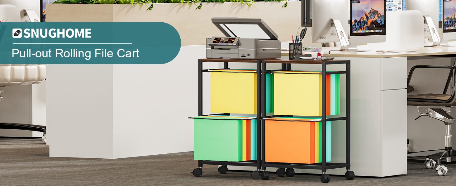 【Multi-Functional File Cart】This file cart can be used as a compact printer stand, file organizer, office cabinet, and office side table. It helps you systematically organize and store files and various office supplies, keeping your desk neat and orderly.