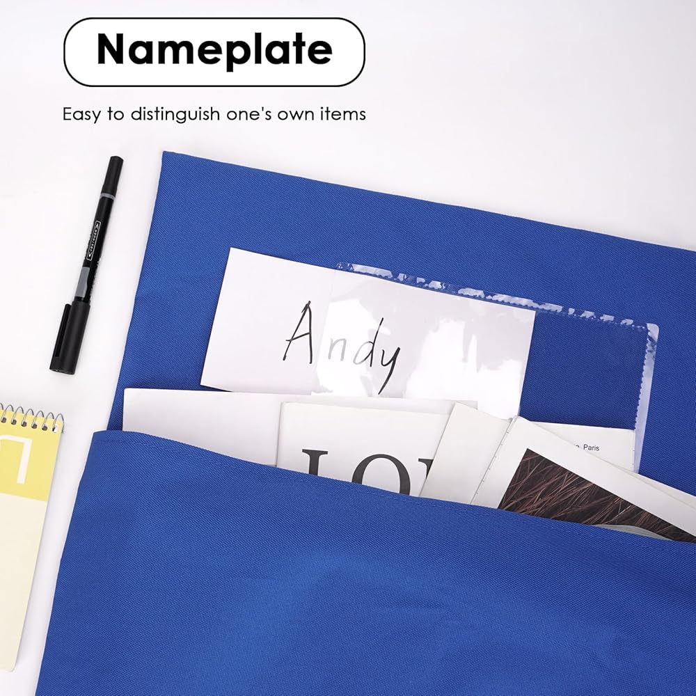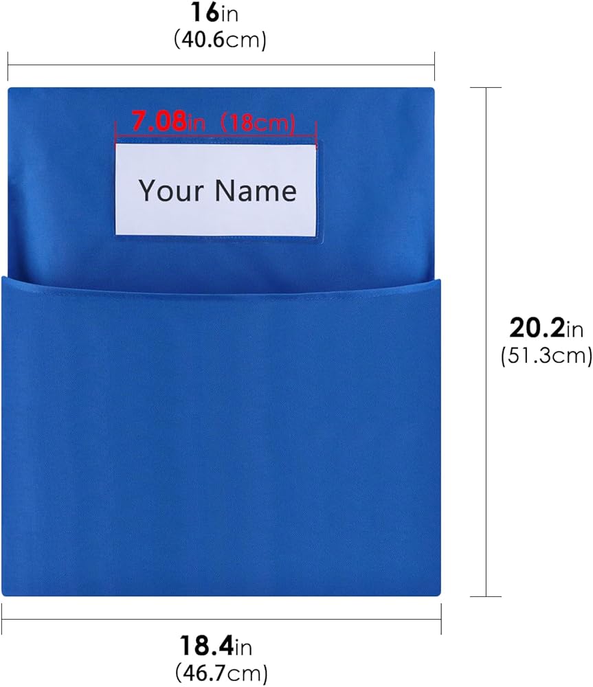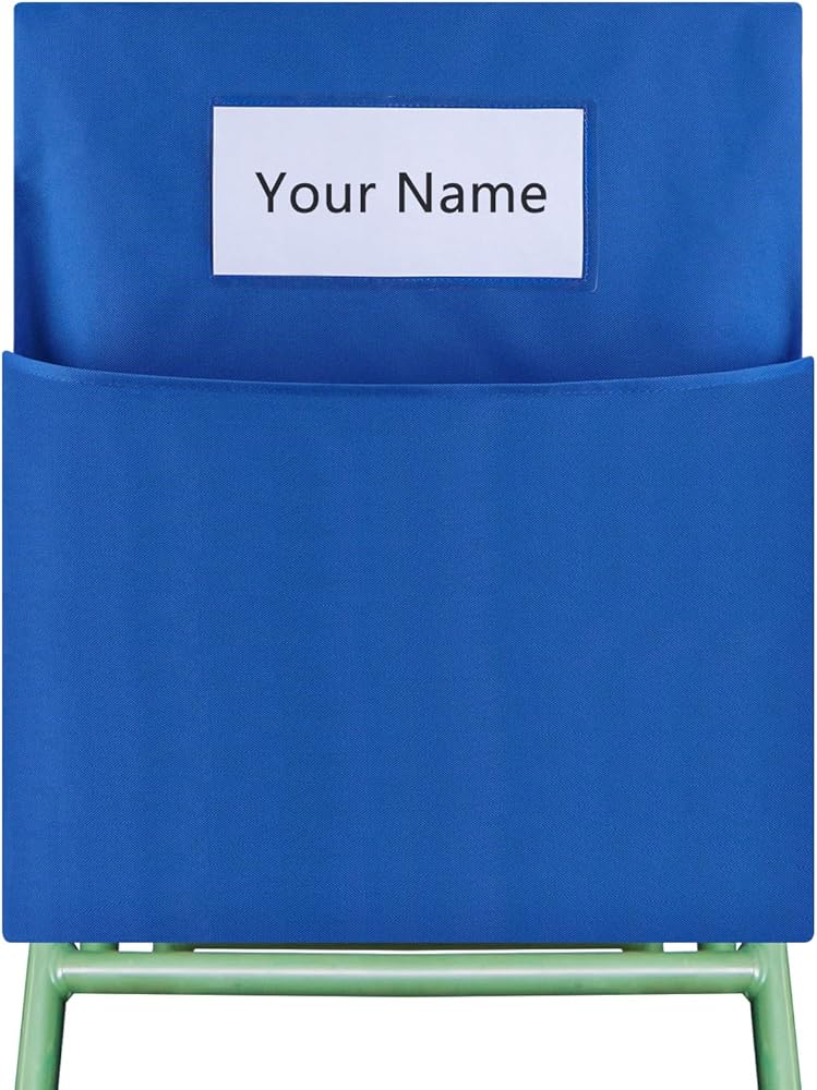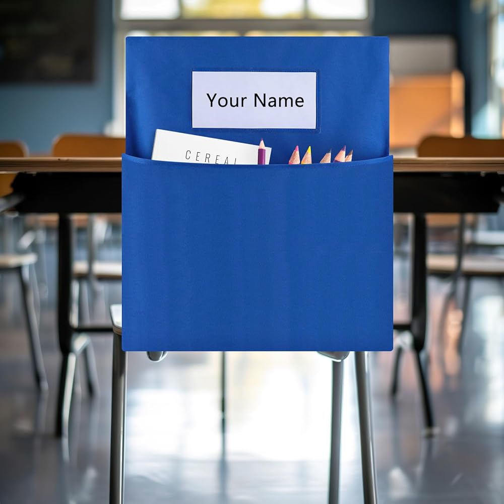 Classroom Chair Back Storage Bag, Large Capacity Oxford Cloth Seat Organizer with Name Card Slot, Multi-Pocket Hanging Storage for Classroom & Home(Blue)