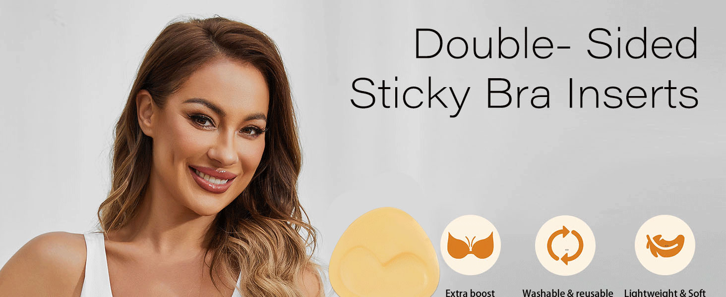 NOTE: The sticky bra inserts should not be seen as separate bras. We recommend using our sticky bra inserts with all kinds of regular bras, Perfect for backless/strapless dresses, t-shirts, halter tops, wedding gowns, sports bras, swimsuits etc. No sewing required and removable.