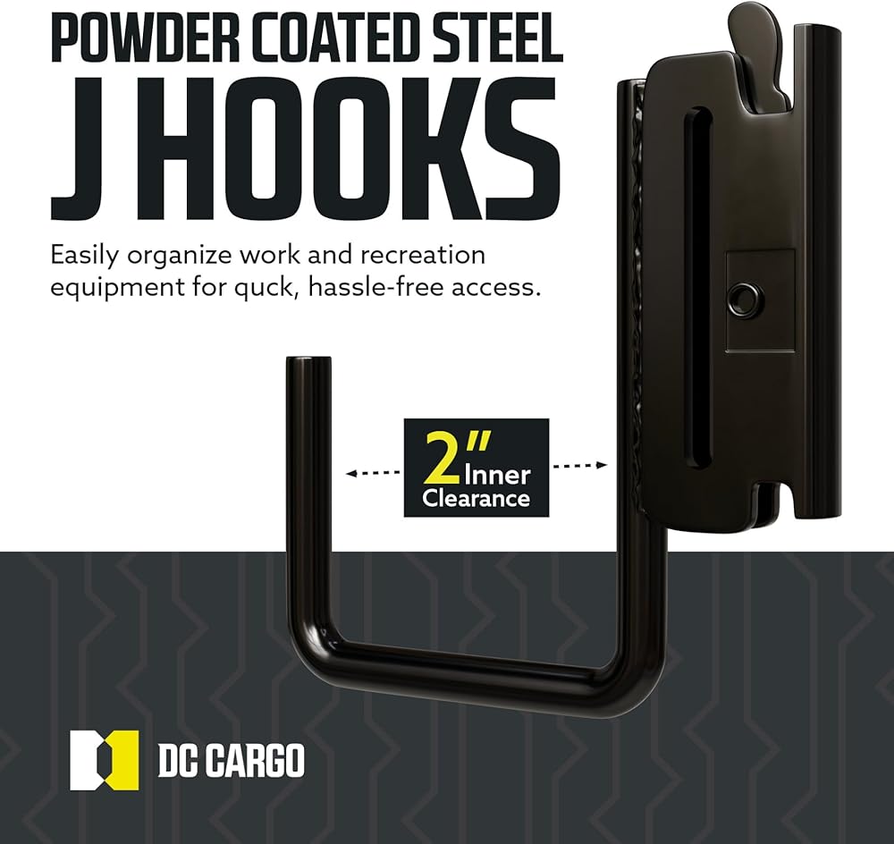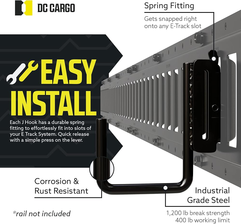 DC Cargo - E Track J Hooks (2" - 4 Pack) - Vertical E Track Accessories - Hanging Hooks for Your ETrack Rail System - Use in Enclosed Trailers, Box Trucks, Vans, Garage, Workshop & Warehouse