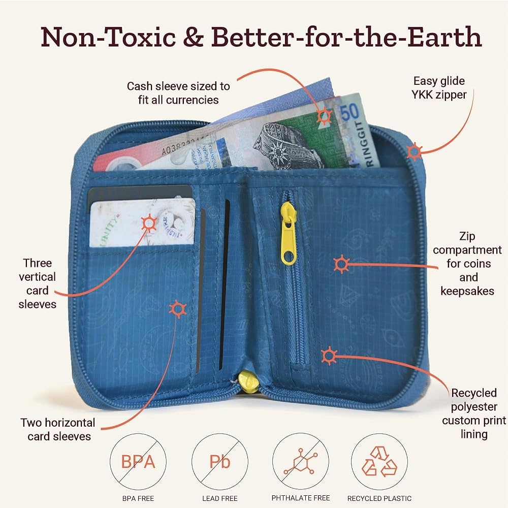 PERFECTLY SIZED: Internal card pockets for all of your cards or small photos, along with a cash sleeve that will fit whatever currency you're toting, you little adventurer (dimensions: 4" x 5" x .75").